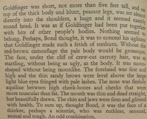 Under normal circumstances I might go on to talk further about my favourite books but I have done that already. I think I did my top ten favourite books in two parts a few weeks back. At various points in my blogging life I’ve written about David Copperfield, The Great Gatsby and Lost Horizon, my three all time favourite books. I’ve also written a few posts about James Bond, the UK’s top secret agent but I’d like to focus on one of the Bond books, Goldfinger.