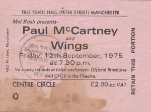 Seeing Paul McCartney and Wings at the Free Trade Hall in Manchester back in 1975 was probably just about the best concert I ever saw. I’d been into the Hall on my lunch break to buy tickets to see Kiki Dee and her band but while I was waiting, a sign went up saying that tickets for McCartney were now on sale so as well as getting tickets to see Kiki Dee, I bought tickets to see Paul as well.