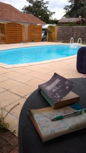 Sitting by the pool outside this house in France I do feel that it’s really a place that Liz and I have both fallen for. It’s an old country house with very thick walls and our bedroom is a modern extension with an en-suite bathroom. In a morning our usual routine is for me to get up, make a brew and bring it back to bed and for Liz and I to check our emails and then see who will be victorious in a card game we play together on our iPads. Those thick walls come into play here though as being so thick we don’t get much of an internet signal in the bedroom so one of us will have to reach out for our phone and switch on our internet hotspot so we can play.