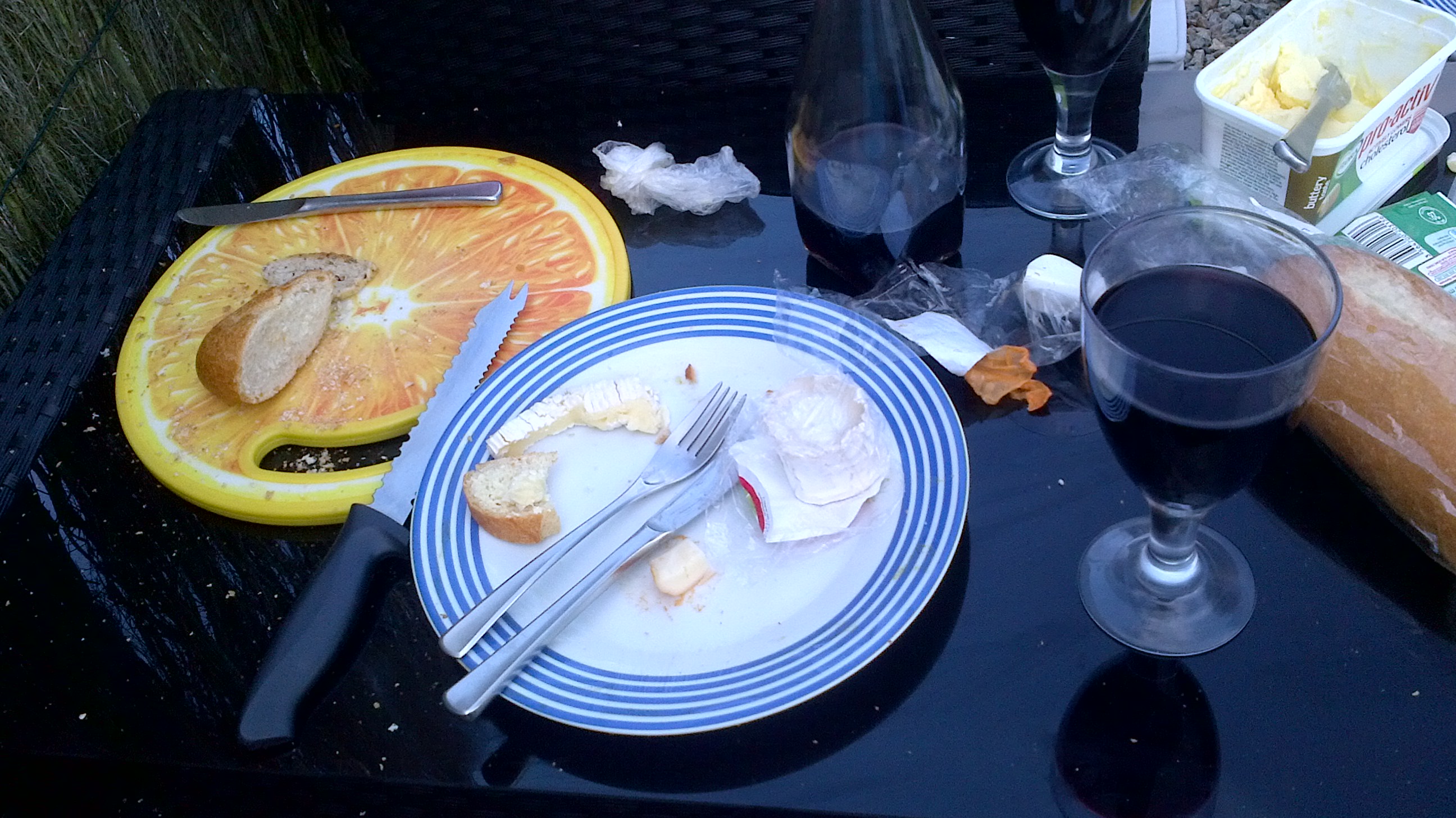 A slightly unrelated picture: Cheese in a French restaurant with a pichet of vin rouge