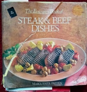 When I left home when I was about nineteen, I bought my first cook book and it’s one I still have today. The Epicure’s book of Steak and Beef Dishes by Marguerite Patten. I think I bought it in a cheap remainder book shop and it’s full of additional recipes I have cut out of magazines or newspaper supplements. It’s my go to book whenever I make a chilli or a bolognese or even a roast dinner. It contains all the rudiments for my favourite meals.