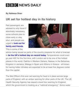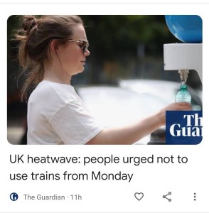 OK so let me get this right, the extreme heat warning is for just two days, not the whole of the summer. The expected heat is going to reach temperatures of 40 degrees C, which works out at 104 degrees Fahrenheit, which is pretty much the temperatures we Brits are looking for when we jet off to Spain for our summer holidays. Is it worth getting excited about? Well, for a month of 100 plus degrees yes but for two days, I don’t think so.